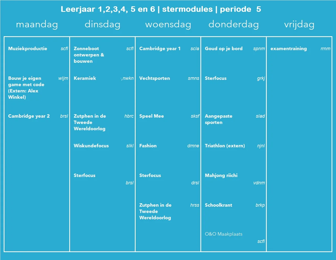 Ervaar jij weleens stress? Bijvoorbeeld over je schoolwerk? Of de dingen die je te doen hebt op een dag. Dat is geen fijn gevoel! Bij deze stermodule leer je hoe stress werkt en wat jij zelf kunt doen om hier minder last van te hebben. We gaan aan de slag met praktische oefeningen die je vervolgens thuis en op school kunt toepassen. Deze stermodule vindt plaats in een ochtendmaatwerkuur, zodat je daarover geen stress en de dag met vertrouwen tegemoet kunt.